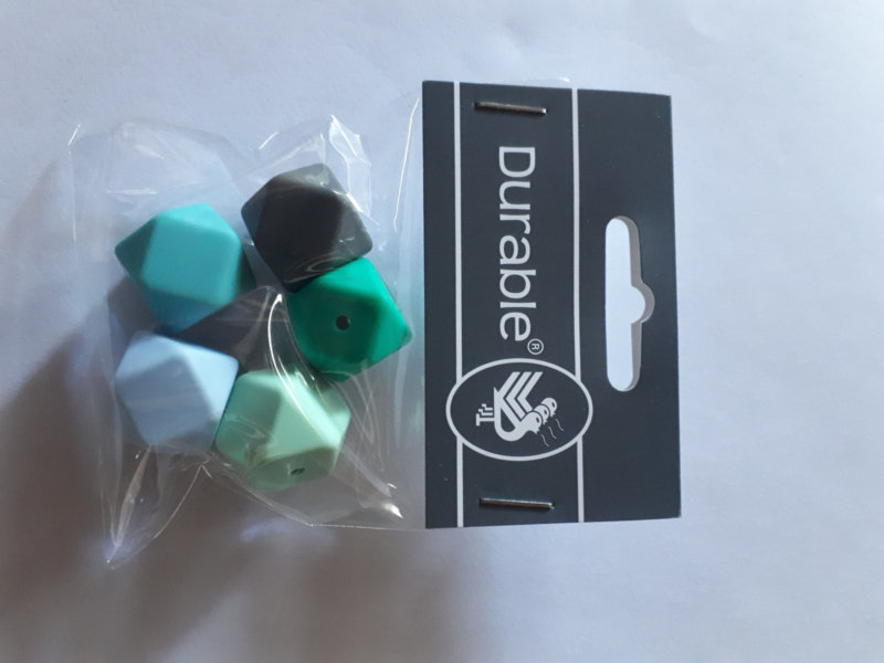 Siliconen Hexagonkralen Blauw. Per 5 stuks verpakt.