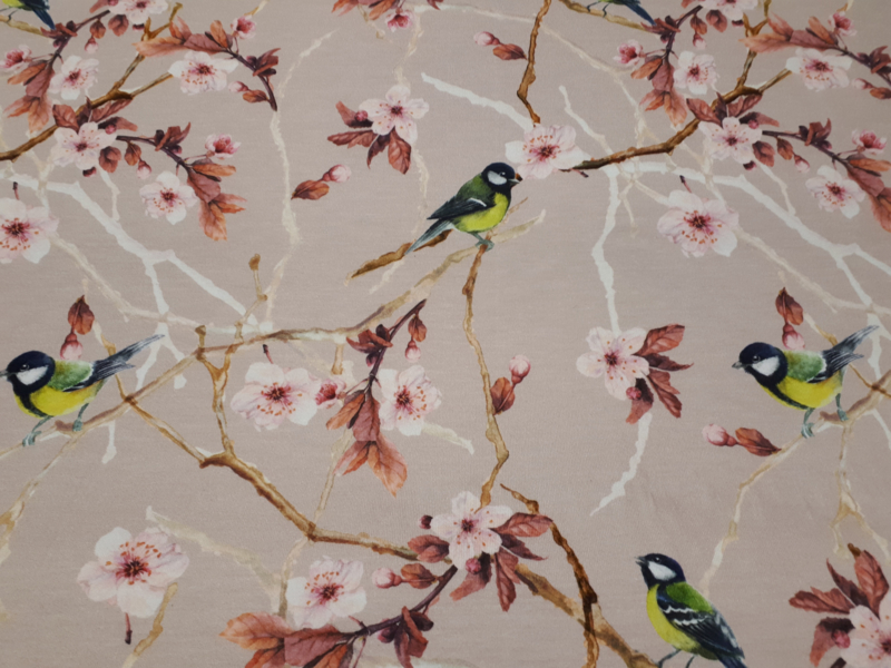 Tricot stof met vogeltjes